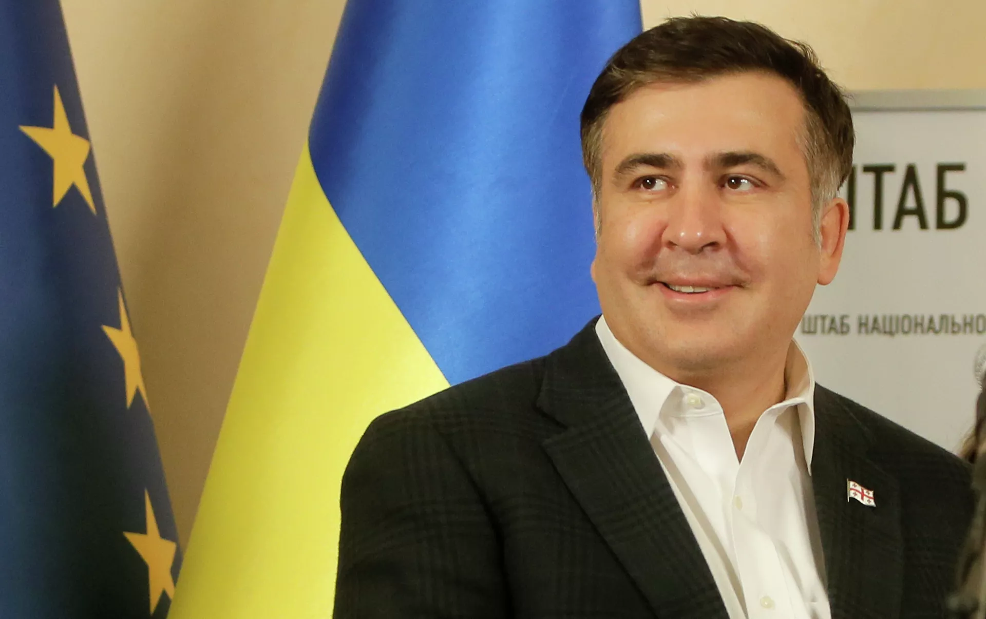 ミハイル・サーカシヴィリ氏は2008年のグルジア・オセチア紛争時に撮影された奇妙なビデオによっても知られている。ビデオでは、テレビカメラが時間より早くスイッチが入り、当時のサーカシヴィリ大統領が極めて不安げな様子でネクタイを嚙んでいる様子が映された。