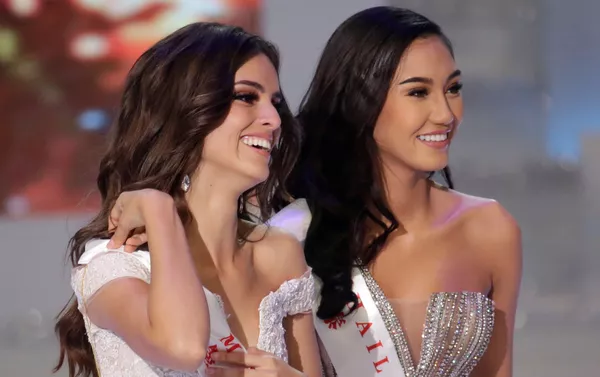 Miss Mexico and Miss World 2018 Vanessa Ponce de Leon (L) and runner-up Miss Thailand Nicolene Limsnukan take part in the 68th Miss World pageant in Sanya, Hainan island, China December 8, 2018.