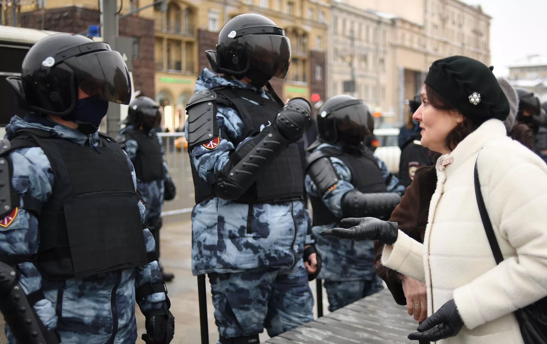 モスクマ中心部の無許可集会に約4000人が参加した。首都警察のプレスサービスが通信社スプートニクに伝えた。 2021年1月23日, Sputnik 日本