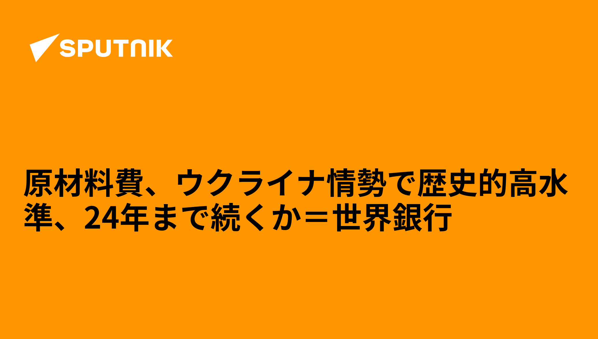 世界銀行は世界の原材料費の高騰について、2024年まで歴史的高水準が続くとの予測を報告書で示した。ウクライナ情勢の悪化が貿易市場に深刻な打撃を与えたためと説明し、紛争の長期化や対露制裁の追加といった事態になれば、価格上昇にさらに拍車がかかるとの見方を示している。 2022年4月27日, Sputnik 日本