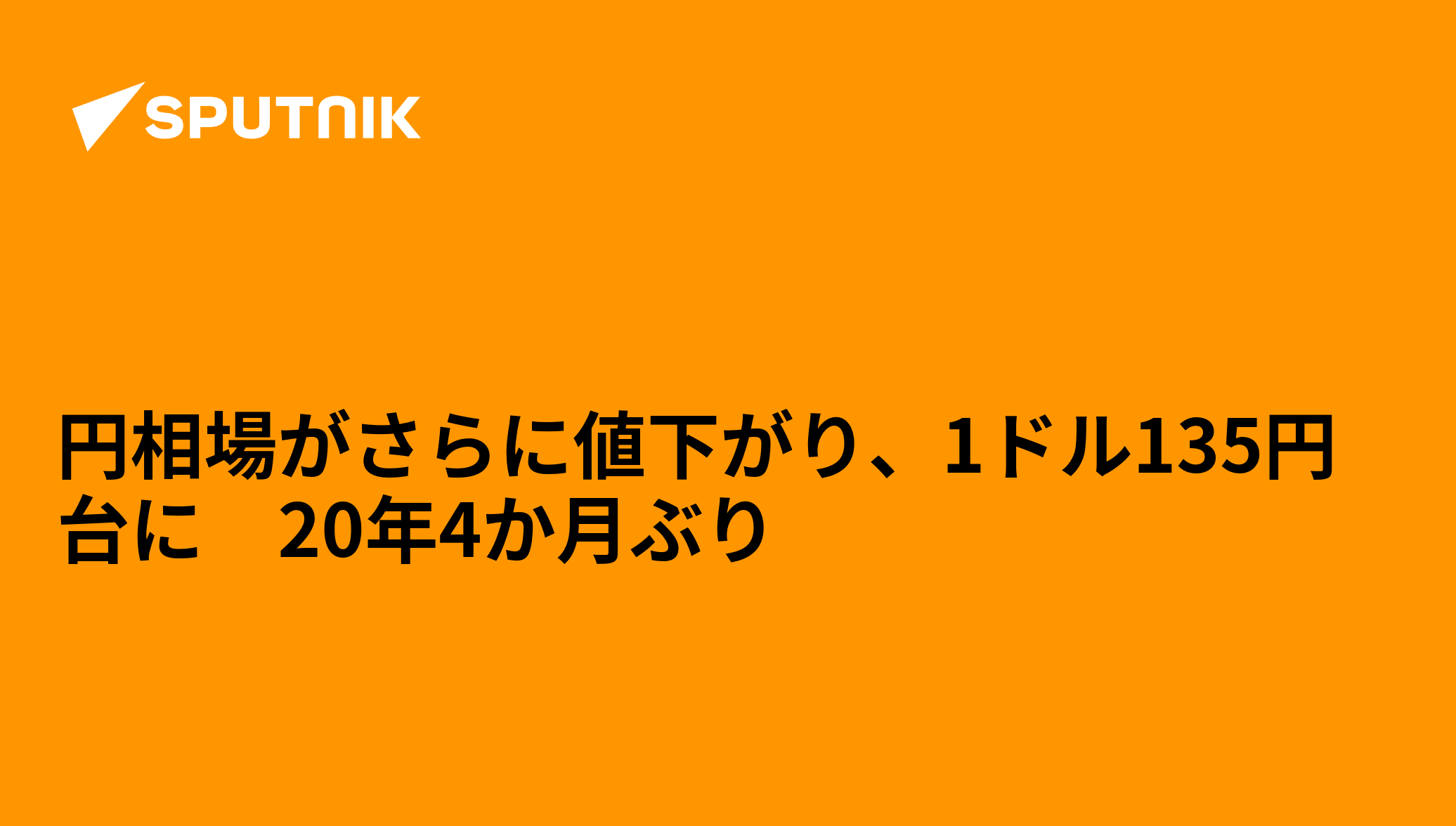 13日、東京外国為替市場ではさらに円安が進み、円相場は一時、1ドル=135円台まで値下がりした。20年4か月(2002年2月以来)ぶりの水準を記録した。日本の各メディアが報じている。 2022年6月13日, Sputnik 日本