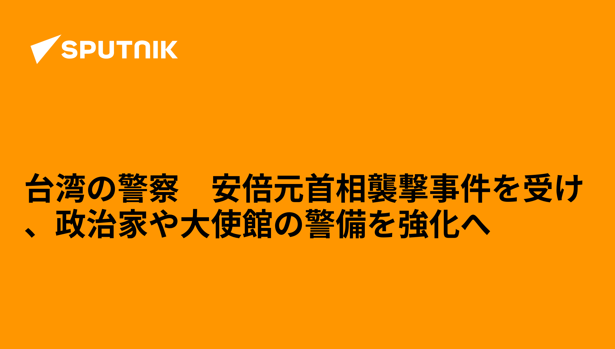 台湾の警察は、8日に日本の奈良県で安倍晋三元首相が銃撃され死亡したことを受け、台湾の政治家、大使館や領事館、国際機関の事務所に対する警備を強化する方針。台湾内政部警政署のウェブサイトに声明が掲載されている。 2022年7月9日, Sputnik 日本