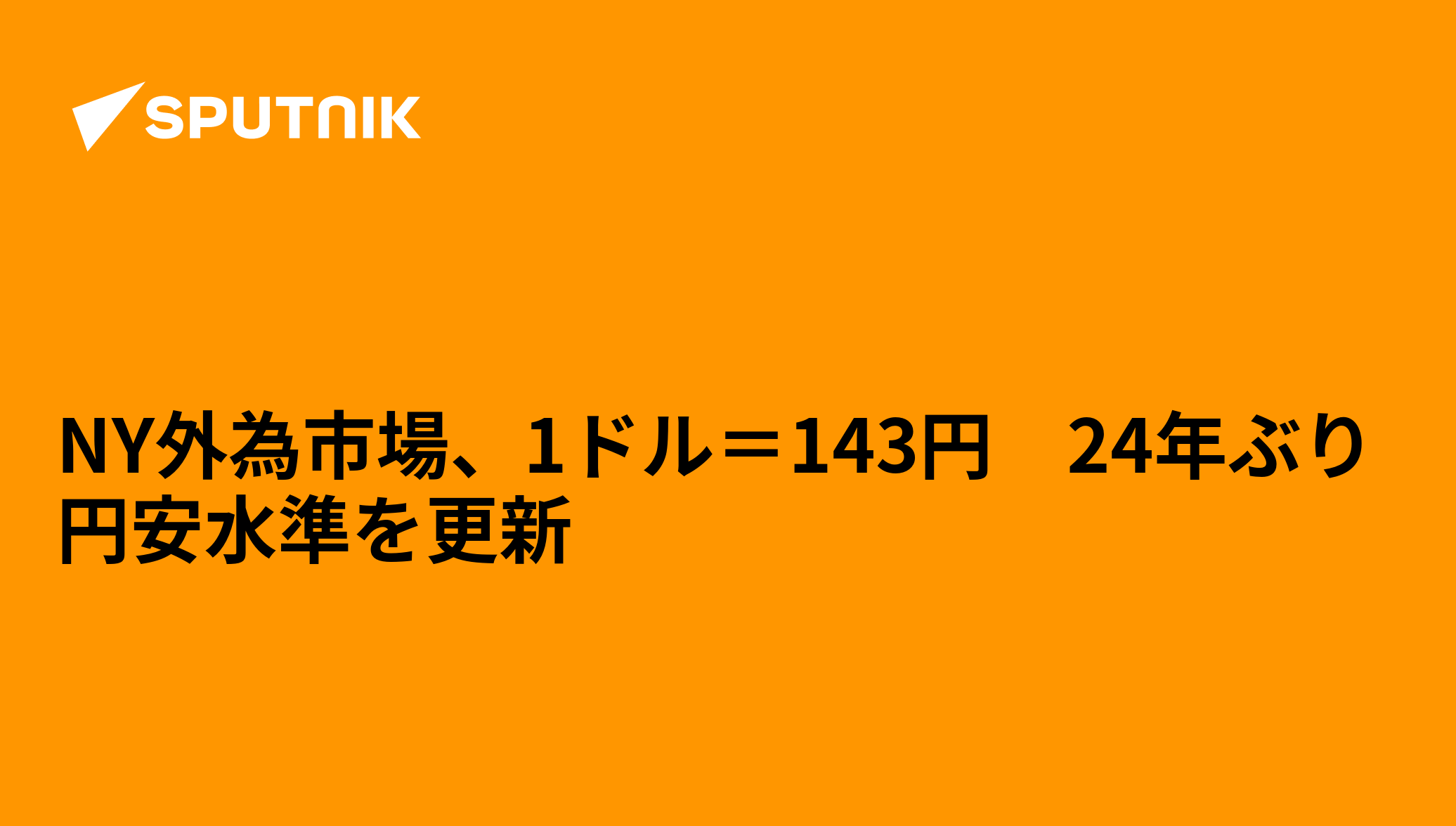 2022年9月6日, 22:59 (更新: 2022年9月7日, 03:57) ニューヨーク外国為替市場では6日、一時円相場が1ドル=143円台となり、1998年8月以来24年ぶりの円安ドル高水準を更新した。各国メディアが伝えている。