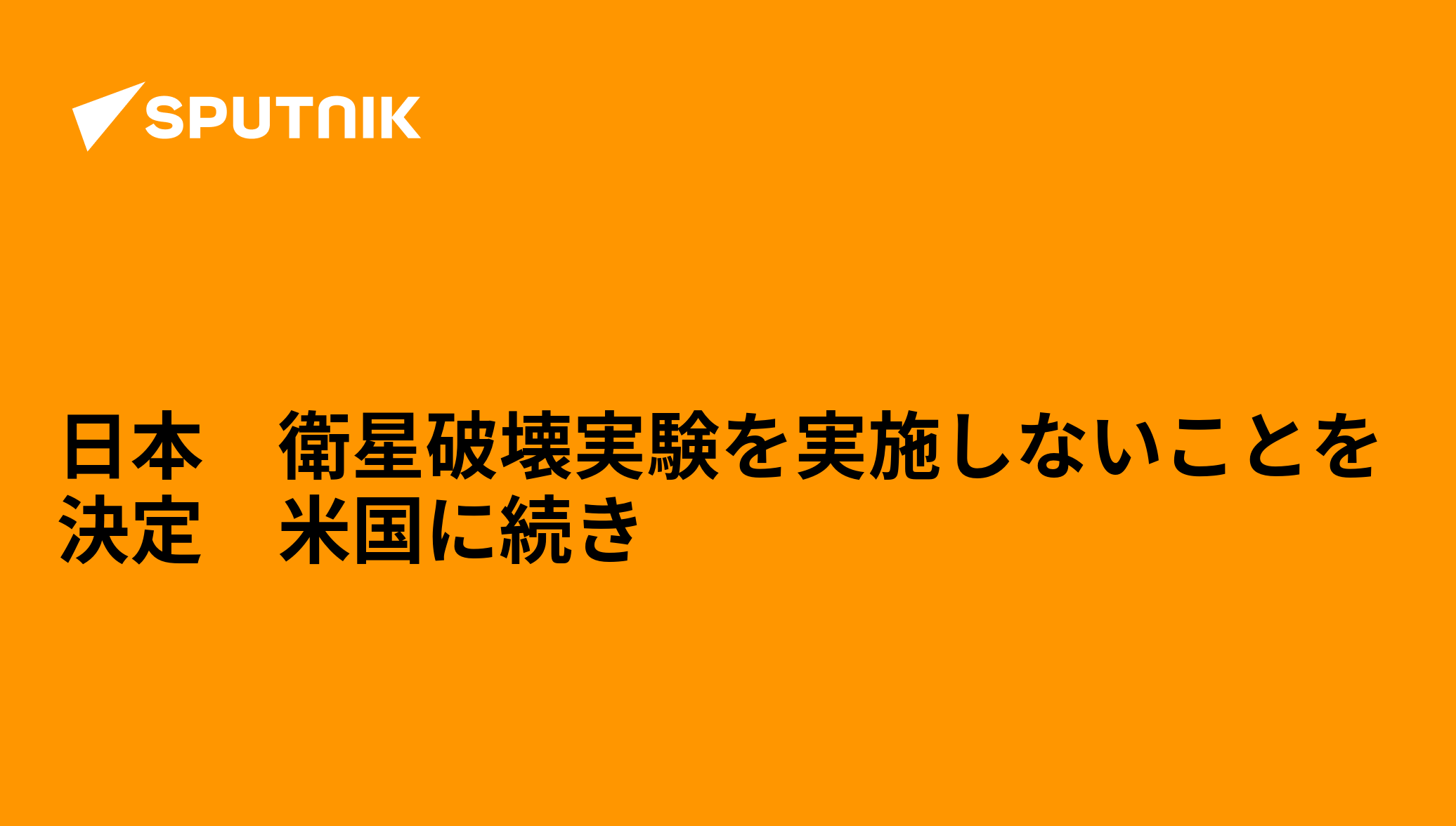 日本政府は13日、「宇宙空間における責任ある行動の規範の形成に向けた国際場裏での議論を積極的に推進していく」考えを示し、破壊的な直接上昇型ミサイルによる衛星破壊実験を実施しない旨を決定した。外務省が発表した。 2022年9月13日, Sputnik 日本