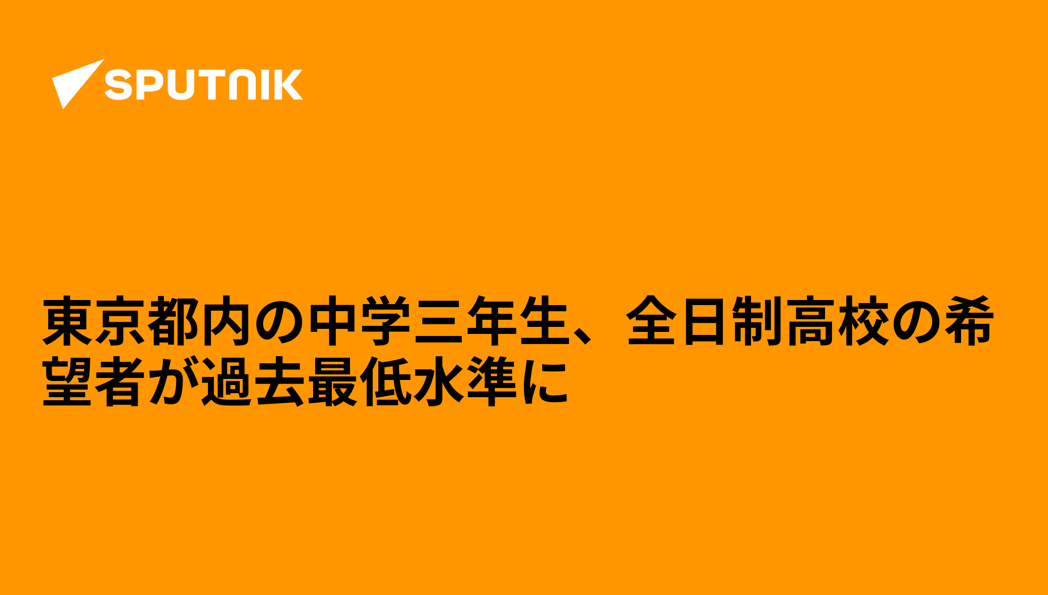 東京都内で学ぶ公立中学校の3年生のうち、2023年の入試で全日制高校を第1志望とした生徒の割合が89%余りとなり、過去最低となった。一方、通信制を志望する生徒の割合は増加した。NHKが報じた。 2023年1月14日, Sputnik 日本