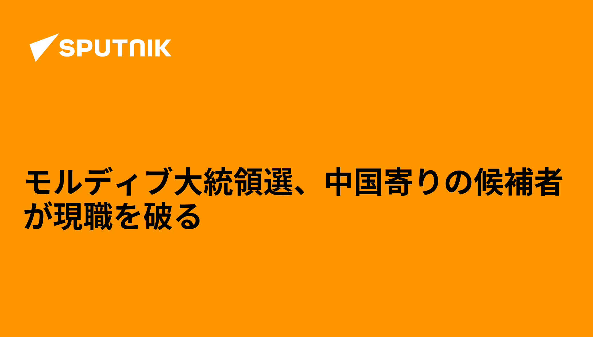インド洋の島国モルディブで大統領選挙の決選投票が行われ、中国との関係強化を訴えた野党の統一候補が現職の大統領を破って勝利した。NHKが報じた。 2023年10月1日, Sputnik 日本