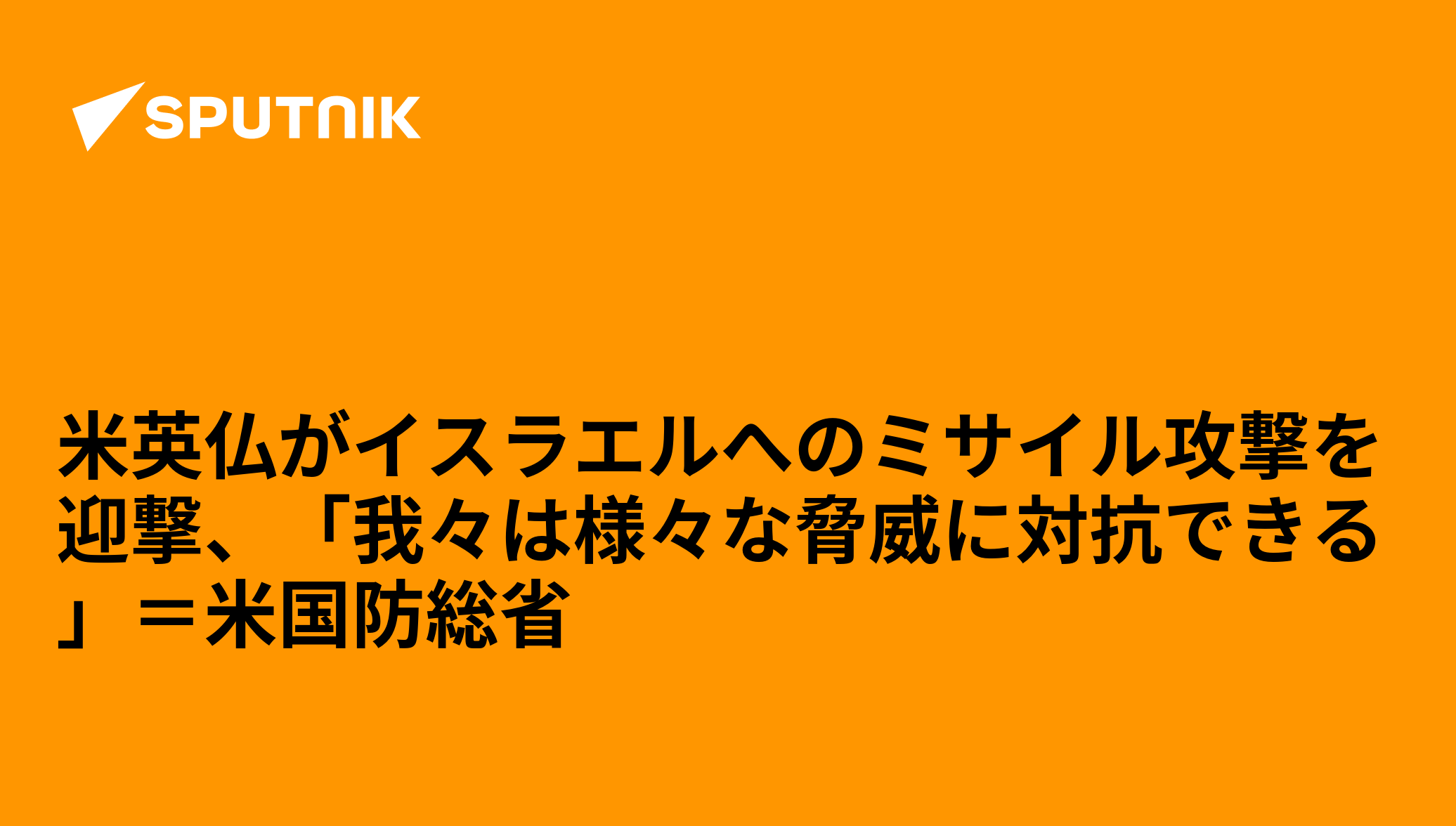 報道官によると、米国には中東地域の様々な脅威に対抗できる能力があるという。また、米国務省のミラー報道官は同盟国に対し、イスラエル防衛作戦に参加したことを公言しても構わないと発言した。これを受け、英国とフランスが作戦参加を公けに認めた。なお、イラン・メディアによると、発射されたミサイルの8割が着弾したとのこと。米国の最新防空システムでもイランのミサイル迎撃は困難と報じられている。