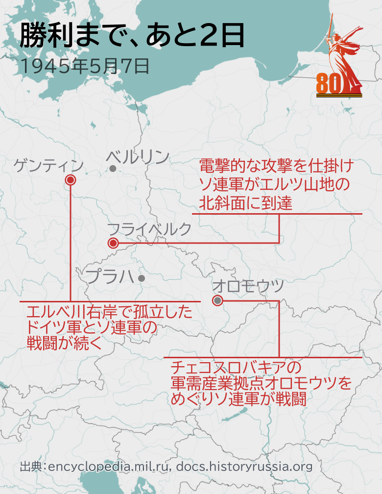 勝利まであと2日、1945年5月7日のソ連軍の戦況をお伝えする。