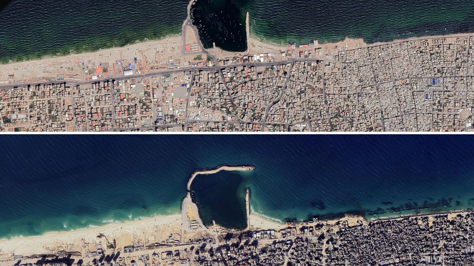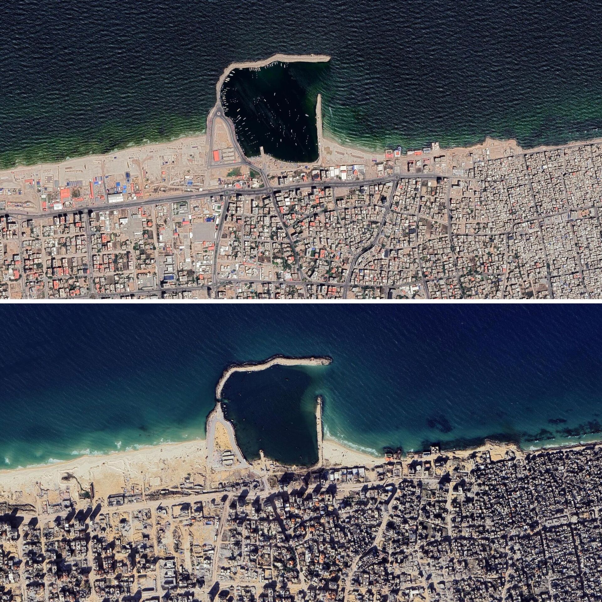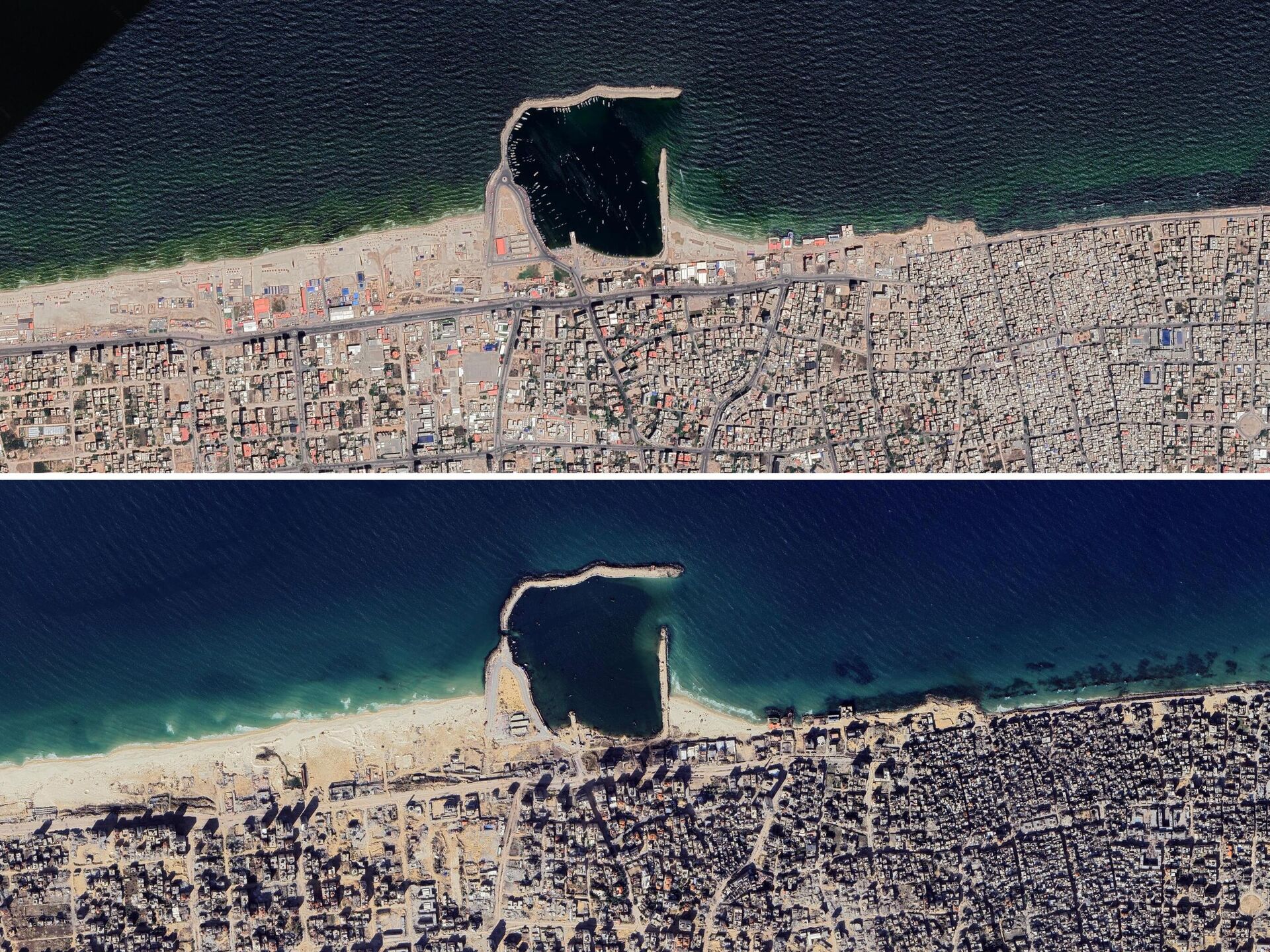 ガザ港周辺(上:2023年7月、下:2024年12月)