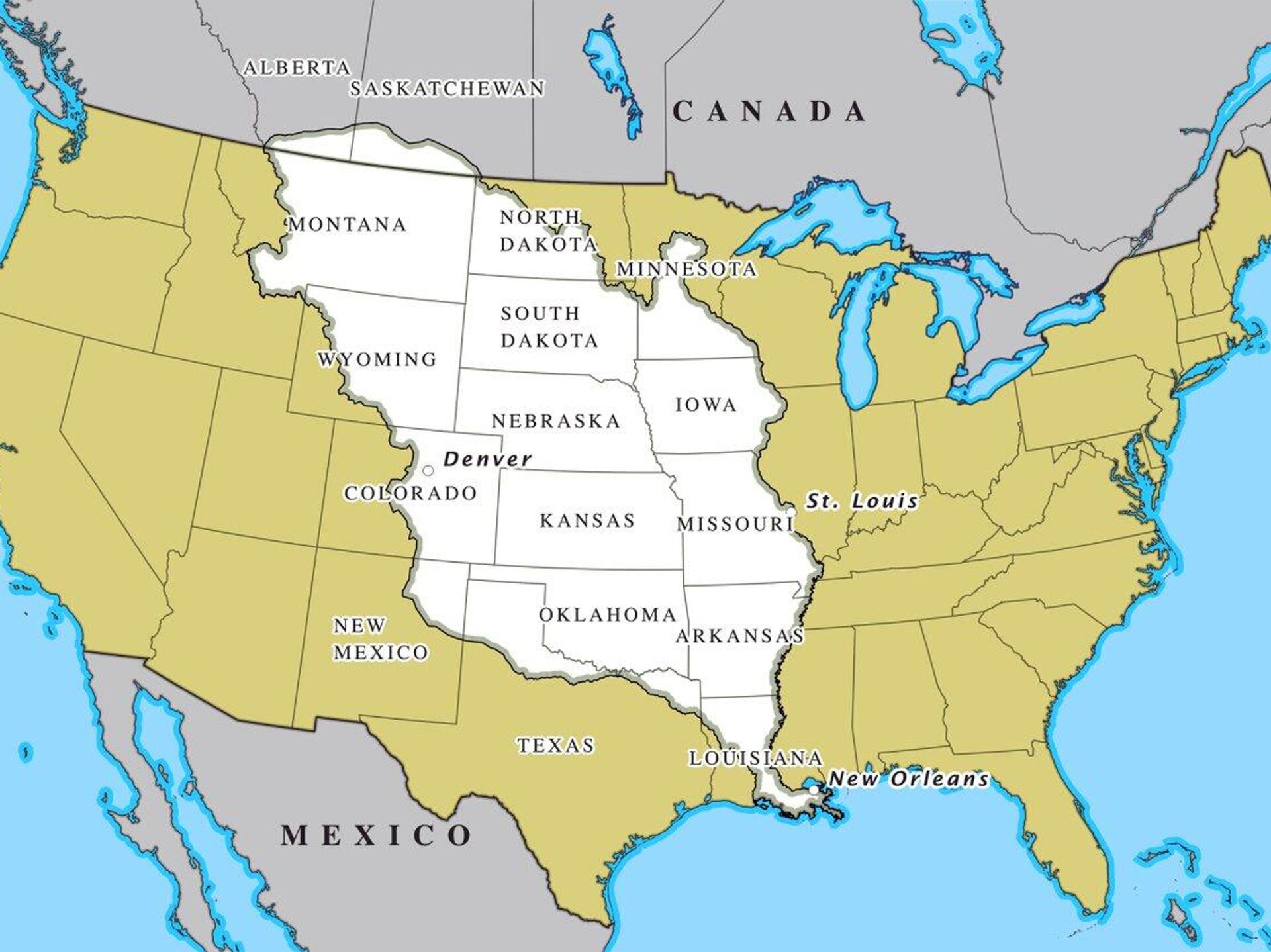 1803年、米国のトーマス・ジェファソン大統領はフランスから広大なルイジアナ領を1500万ドルで購入。これにより、米国の面積は約2倍に拡大した。
